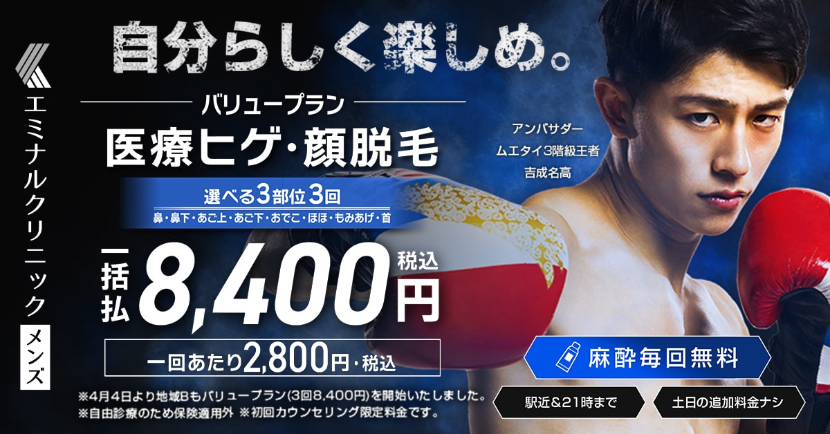 | ヒゲ3部位 | 3回 | 8,400円 |
